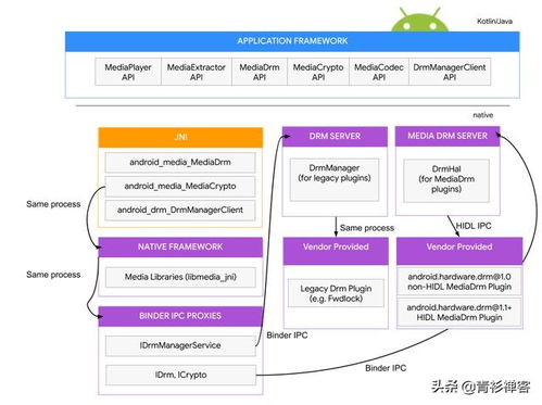 1. DRM框架:安卓系统提供了一个通用的DRM软件框架,允许不同的DRM解决方案通过插件的方式集成到系统中。这样一来,设备厂商可以根据自己的需求选择合适的DRM方案。